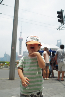涼しくなったねえ、元気が出たねえとKと言い合い店を出る。時刻は14時くらい。帰る前に最後に船を見ていこうともう一度外灘側に出る。船を眺め、満足して帰途につく予定だったが、ここで再び思わぬハプニング。ちょうど出航しようとしていたフェリーを見て、あれに乗りたいとKが愚図りだした。もうこの時間では遅いから乗れないよ、次のお休みの時に乗りに来ようと正攻法で抑えにかかるも撃沈。乗りたいの連呼と共に泣き出した。どうやら体力的に限界らしかった。眠いのである。最後の最後でやらかしてしまった・・・