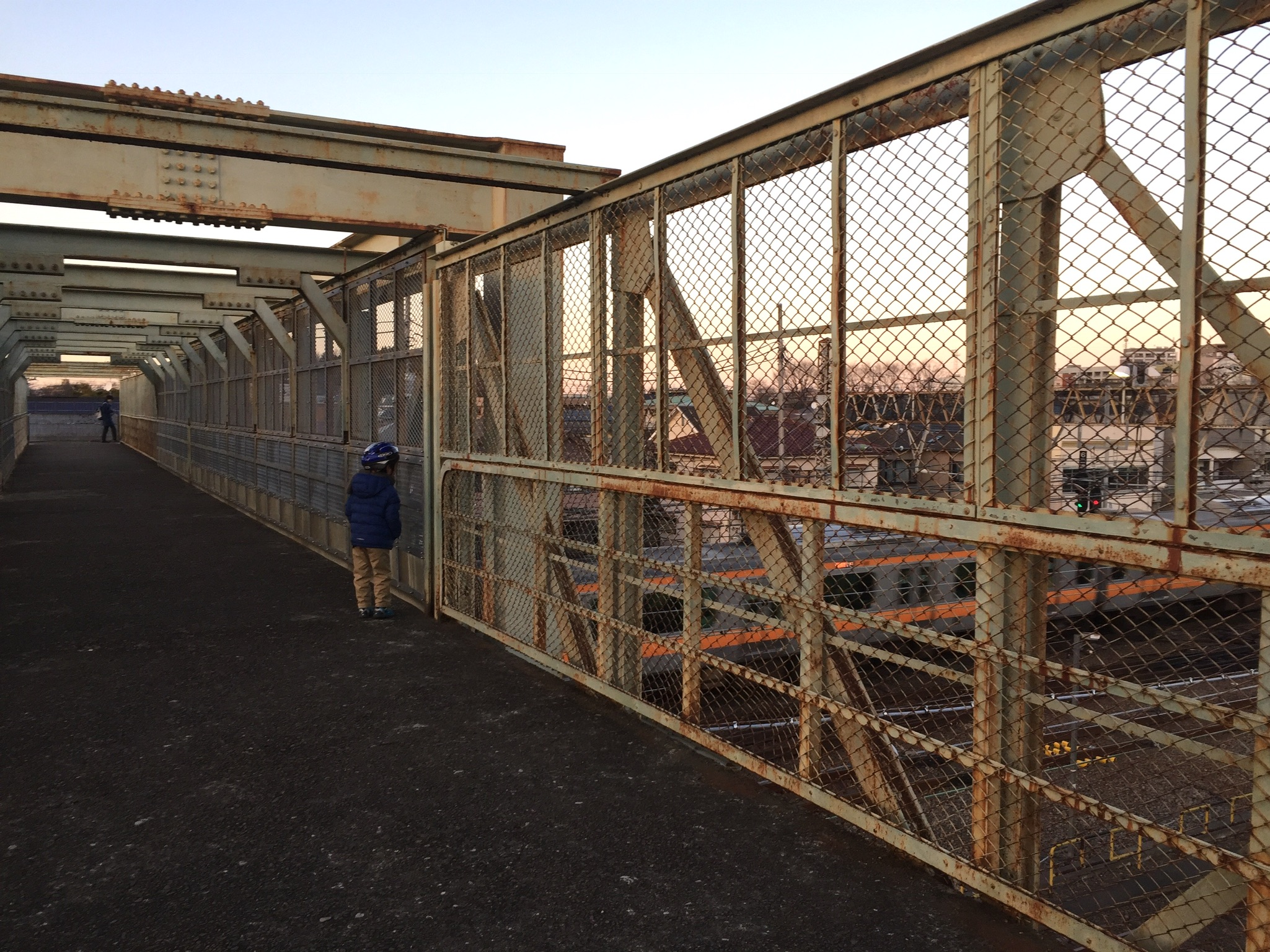 Kは私の提案に素直に乗ってくれた。時刻は17時前、たっぷり体を動かした後だから「おなかぺこぺこだよ~」とは言ったが、嫌そうでもなかった。階段の下に自転車を置かせてもらい、Kと二人、錆びた鉄の階段を登っていく。いつ修繕されたものか知らないけれど、なかなか年季が入っている。まさに「鉄橋」という感じ。