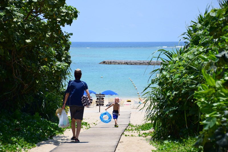 写真:石垣島の浜辺で父子